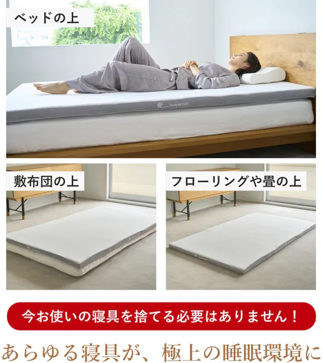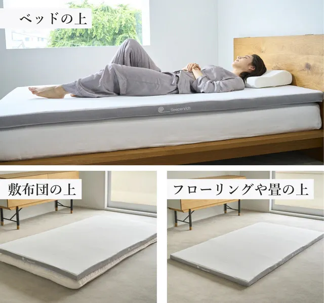ベッドや敷布団の上に敷くのはもちろん、フローリングや床の上に直接引いても快適にご使用できます。