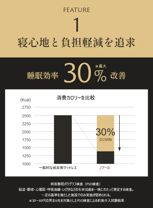 睡眠効率:寝返りをしやすくして、より快適に寝られる度合