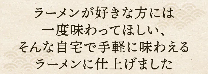 ラーメン好きなら、絶対に食べてほしい。そんな思いから生まれた、当店自慢の一杯です。遠く離れた場所にお住まいの方にも、ぜひその本物の味を堪能していただきたい。そんな心尽くしの冷凍ラーメンです。