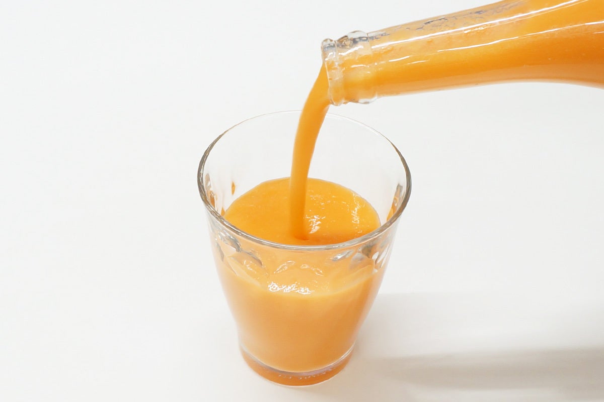にんじんを皮ごとジュースにしました。スムージーのようなシャリシャリとした食感は、食物繊維を豊富に含んでいる証拠です。