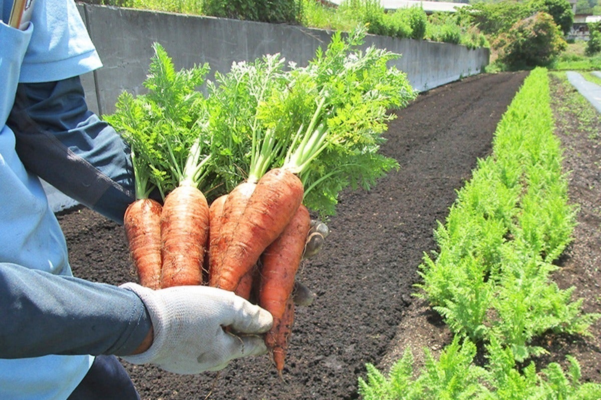 自家製コンポスト(堆肥)と独自の微生物栽培で育ったにんじんは、成分の中でも特に「αカロテン」が多く含まれているのが特長です。