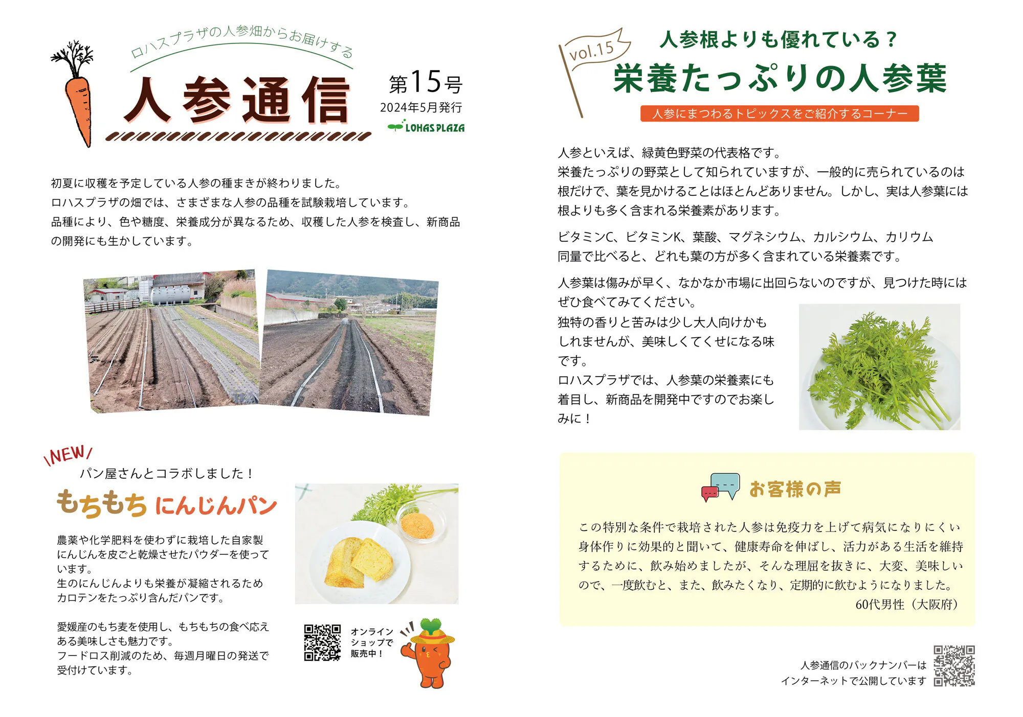 人参栽培の様子や人参にまつわるトピックスを紹介している人参通信第15号を発行しました。バックナンバーも公開しているので、ぜひご覧ください。