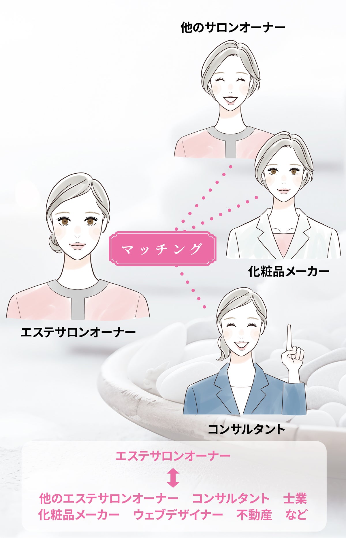 エステ関連の事業者様などの業界関係者同士のマッチングをお手伝いするサイトです。