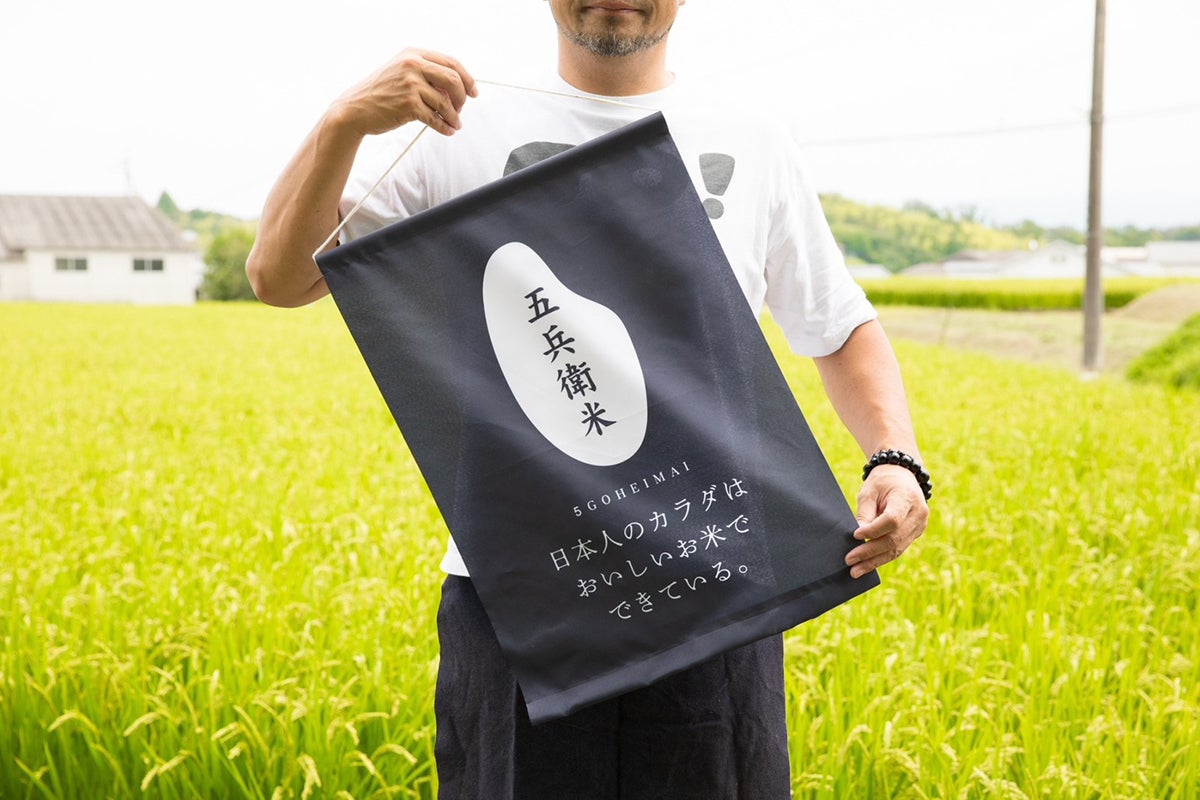 米農家を継ぐ!そう決めた僕は、まずは自分の畑で作った米を、農協に卸さない直販スタイルで売り始めました。米を作っていない田んぼも復活させ、サッカーコート約1.5個分(約3600坪)の広さまで広げました。『五兵衛米(GOHEIMAI)』の誕生です。『五兵衛米』は、地下水と有機栽培で作った奈良県産のヒノヒカリ。粒が大きくねばっこい、甘い品種のヒノヒカリはおにぎりにしたらその違いがわかります。食味値(お米の美味しさを図る基準)でも、6年連続食味ランク「特A」を獲得しています。子どものように手塩をかけて育てた米は、自画自賛ですが、これが本当にうまい!んです。
