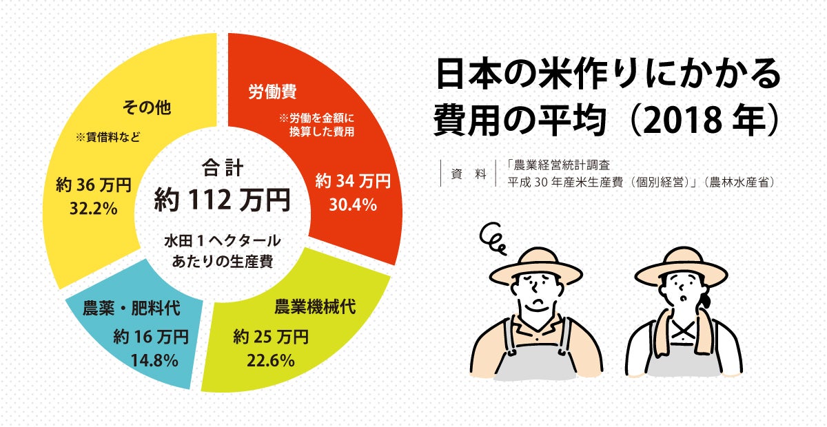 そして昨今、米農家みんなが口を揃えていうのが、「コメを作るより買った方が安い」という言葉……。その理由は収入面です。米農家の平均収入(年間)256万円ー諸経費209万円=利益56万円(※)と農林水産省のデータにもあるとおり、米農家が専業でやっていくにはなかなか(結構、いやとても)厳しいのです。そのため専業農家でやれる米農家は少なく、そのほとんどが他の仕事で稼ぎながら農家も続けるという、うちと同じ兼業スタイルです。そうしなければ、家族を養っていけないからです。