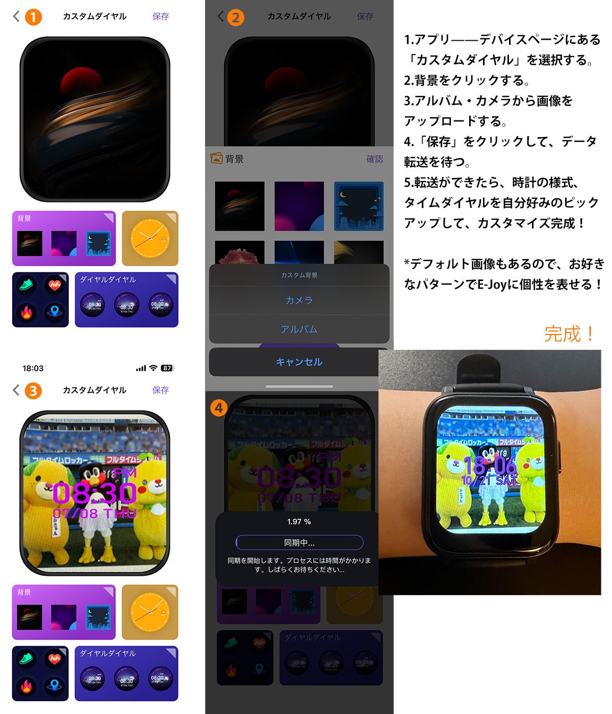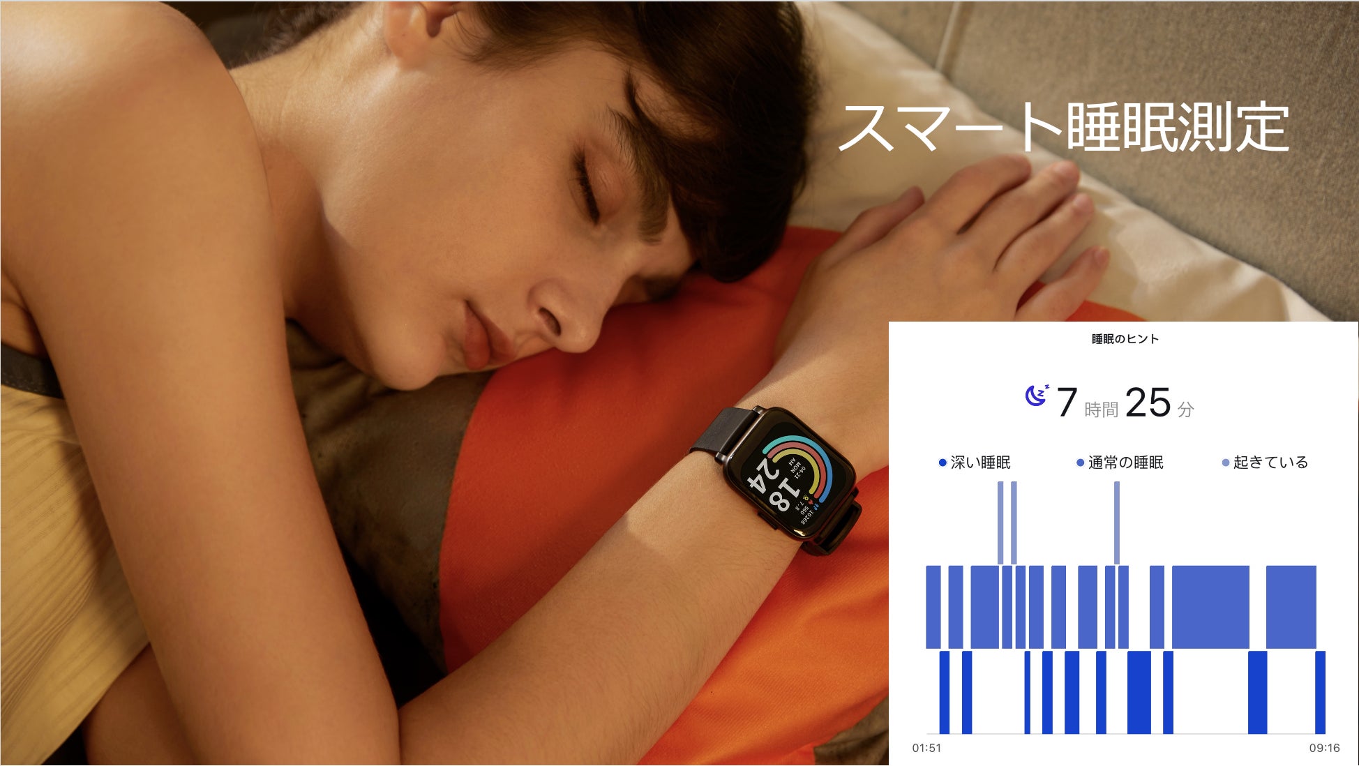 睡眠測定機能は、お眠るの間E-Joyを腕にかければ、ウォッチが自動的に測定します。朝起きた後、データー同期を待っていただいて、アプリの「スリープ」機能に睡眠のパターンが表します。
