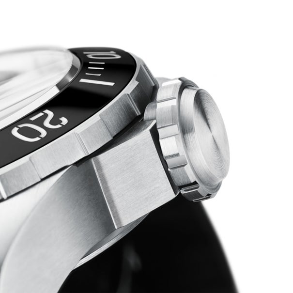 こんにちは!!CAMPFIREの来訪者の皆さん、見て頂いているでしょうか?今回は、スクリュークラウン(ねじ込み式のリューズ)についてのご紹介です。本格的なダイバーズウォッチである、DVR Deep Seaは、この方式を採用しています。普通の時計であれば、飛び出した状態のリューズが、ねじ込み式でしっかりと締まり、水の侵入を防ぎます。プロ仕様のダイバーズウォッチならではの機構です。ちょっとかっこいいですよね。
