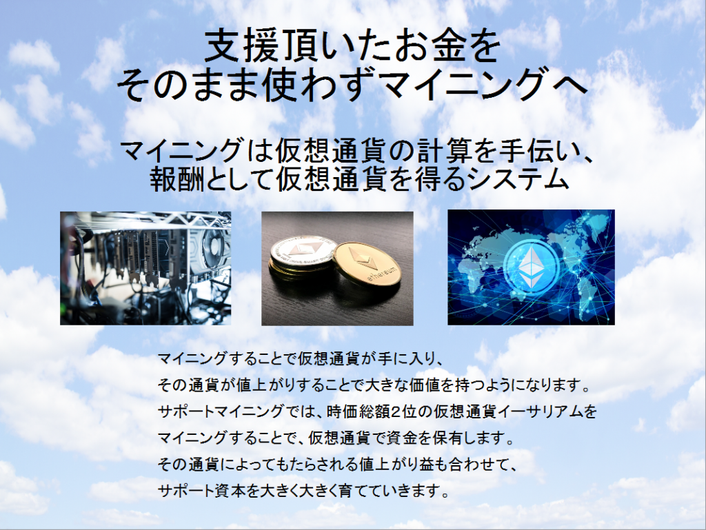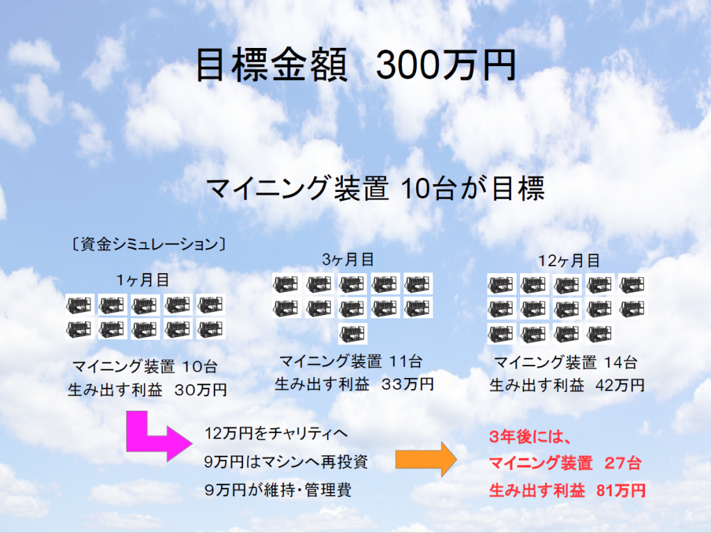 マイニング機器の購入費用に充てます。