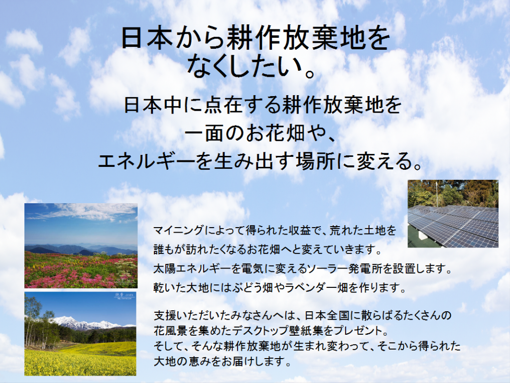 このプロジェクトに賛同いただける方が増えれば増えるほど、日本中の荒れ果てた大地の再生に