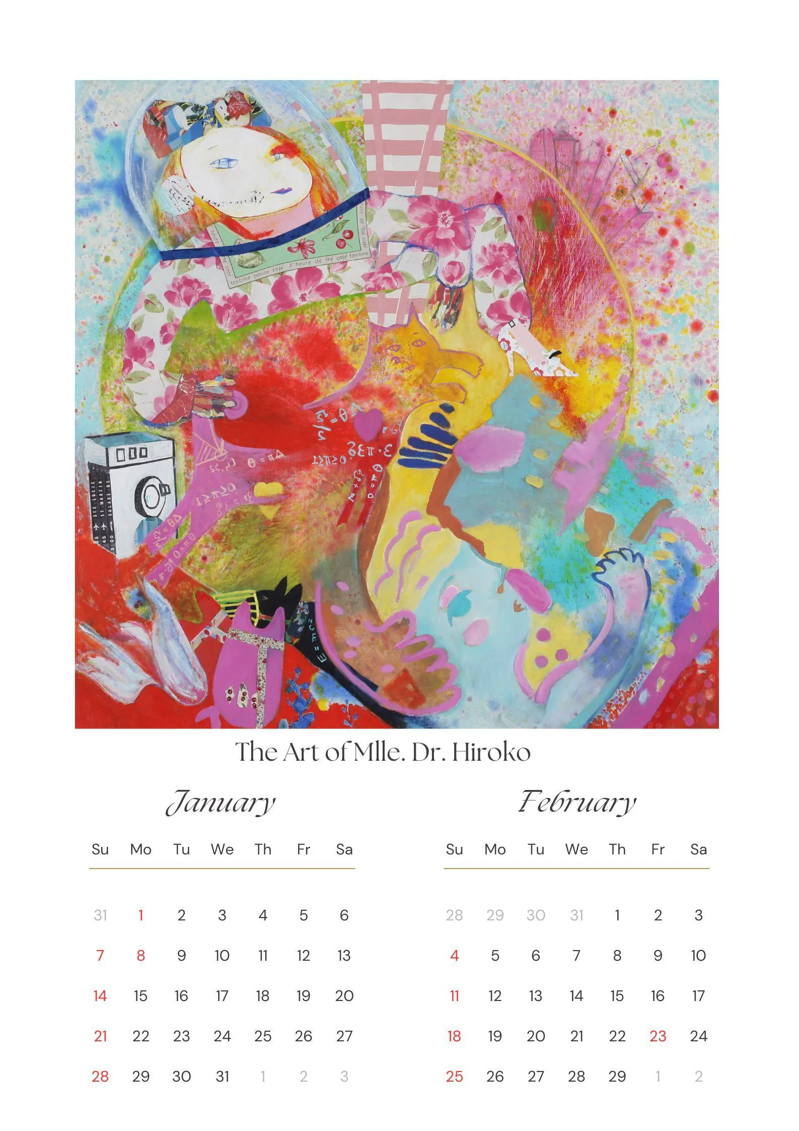 Mlle.Dr.Hirocoの受賞作品の大作(F150号)を、A2サイズの2カ月ごとのカレンダーにしました。