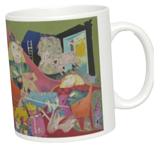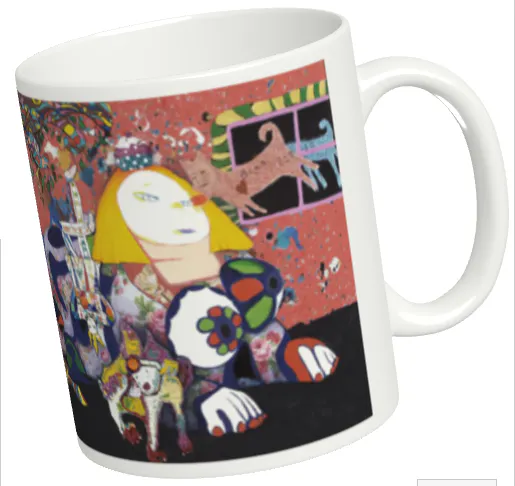 受賞作品「シュレディンガーの猫とアインシュタインの犬」のシリーズから異なる2点を選び、マグカップにプリントしました。お手元に置いて、身近で作品に親しんでいただけます。