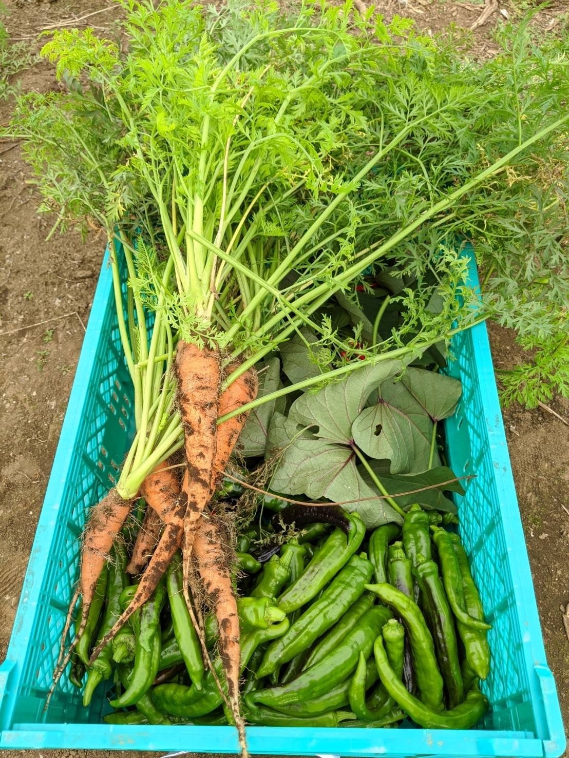 車で生産者さんの元に出向き、採りたてのお野菜を受け取ります。