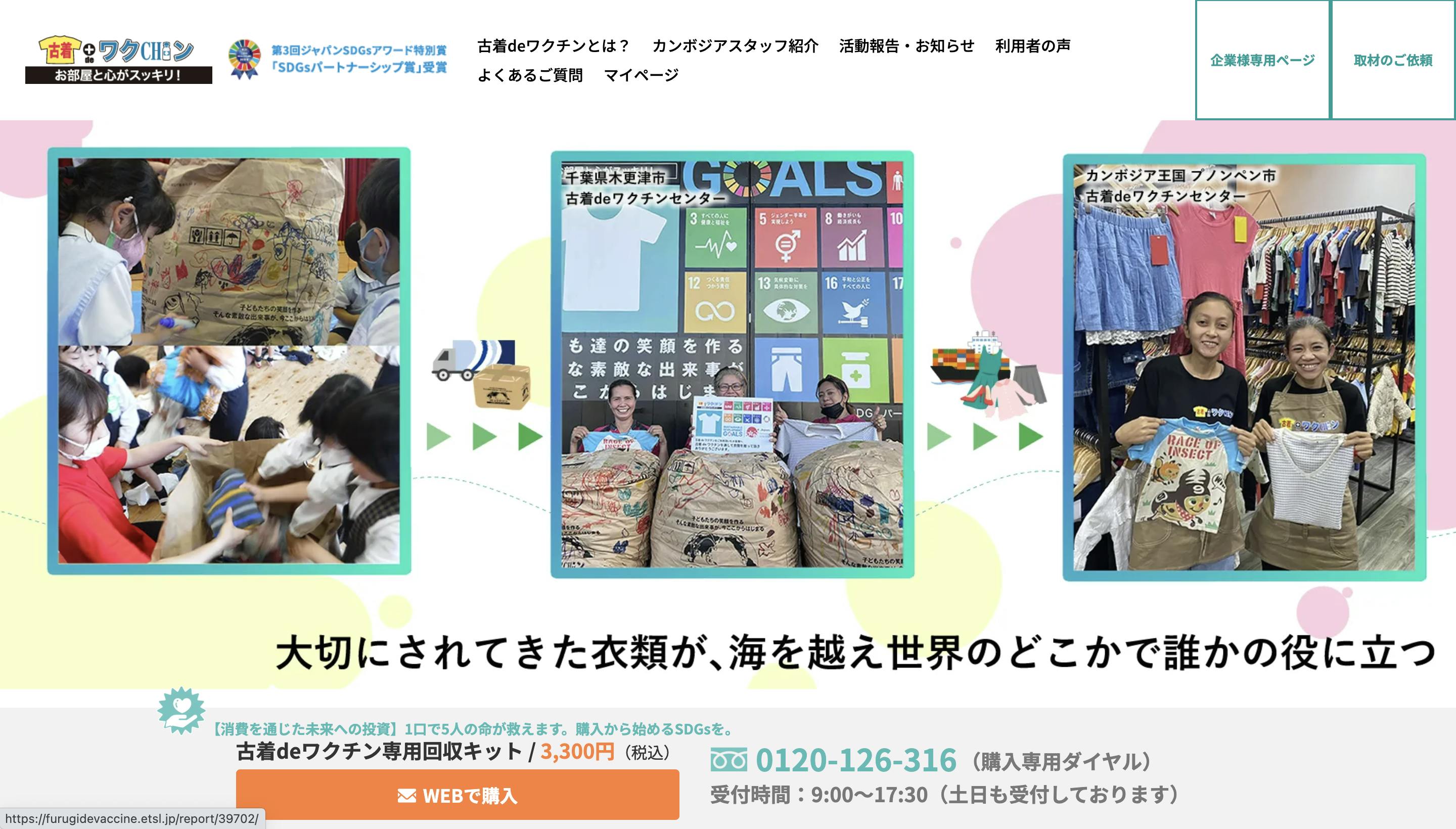 現在、古着を「古着deワクチン」という団体に送ると発展途上の国へワクチンとなって支援ができるという団体が