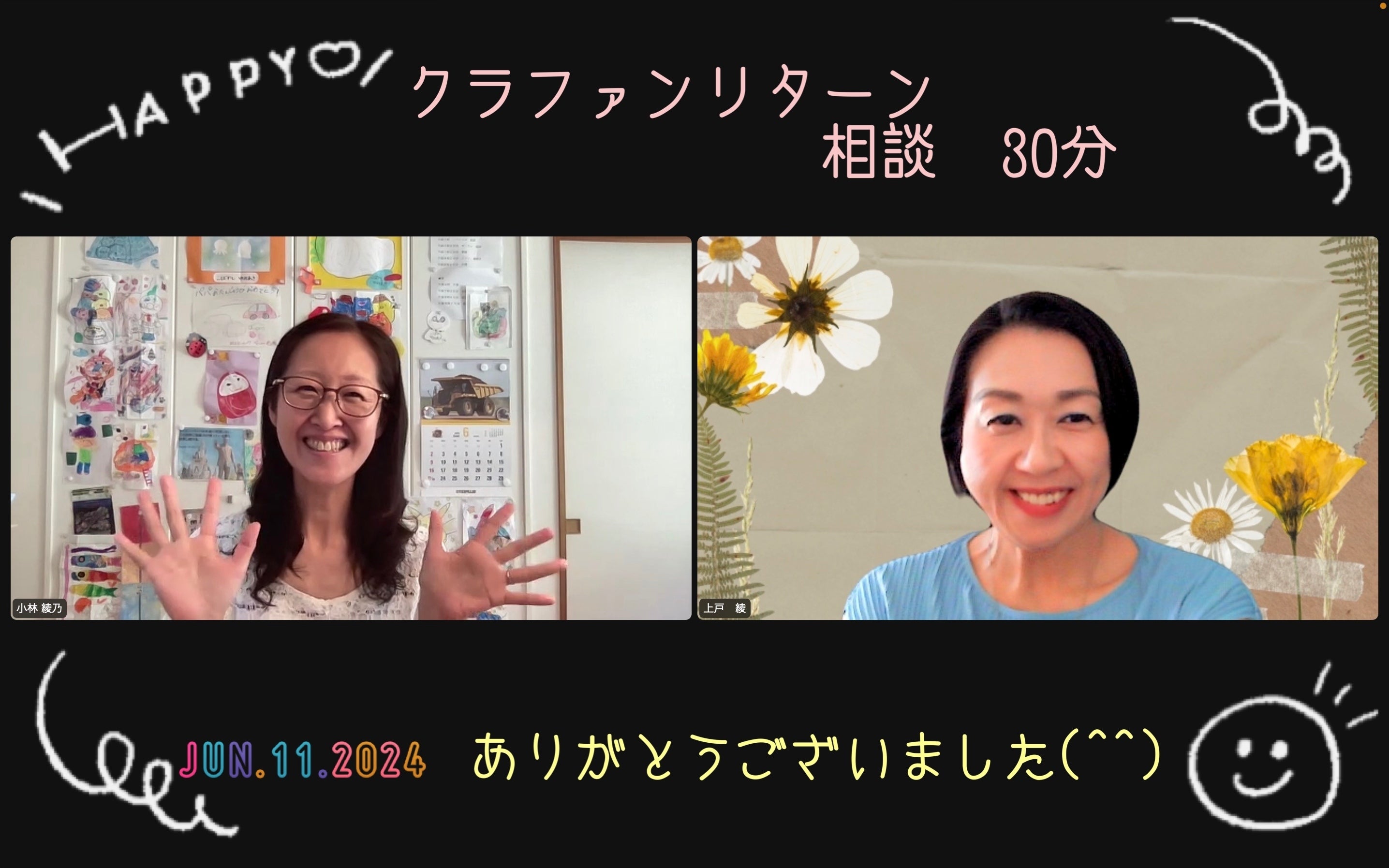 クラファン応援したいと思ったので最近益々輝いてる綾さんの近況や、今後の展望や野望(?)などをお聞きしたかったので、とリターンで”相談の時間”を支援に選んでくださいました。