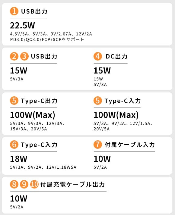 最大8台までデバイス・その他機器に同時充電ができ、PD急速充電に対応したノートPCやMacBookなら約3回のフル充電が実現可能となっています。そのため100W/PD急速充電器であれば、たったの180分でフル充電!