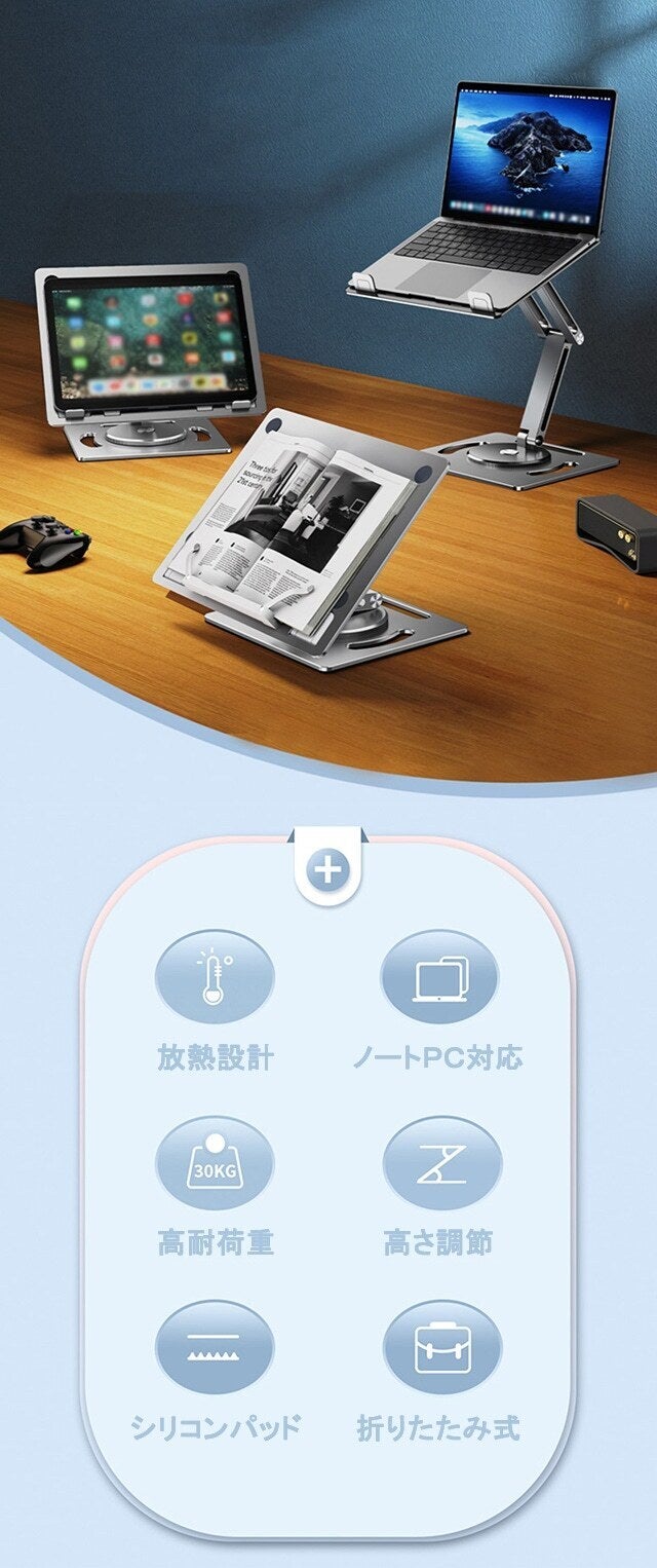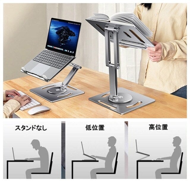 今回ご紹介のスタンドは360度回転でき、あなたの好みの高さと角度でモニターを視聴できます。目線を高め、デスクワークでの肩や首への負担を軽減することに役立ちます。