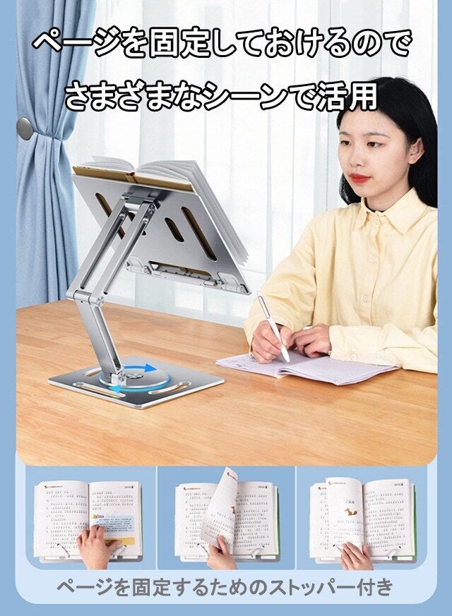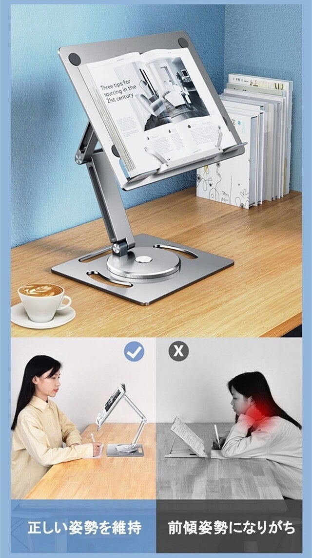 高さも角度も調節できるので、このスタンドを使用すると、自然と視線が上がって正しい姿勢が保てやすいです。