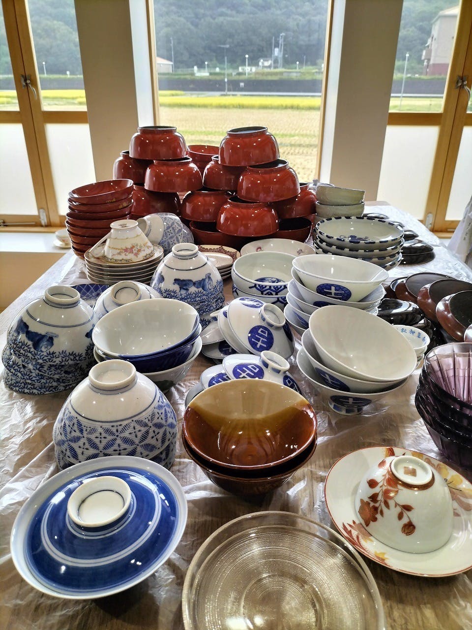 昔のお宅は祝い事や集まりはご自宅で開くため、本当に沢山の食器を揃えていらっしゃる。写真には入りきらない数。高価であろう陶器や漆器も含まれており、ありがたく頂戴し、必死で洗いました(笑)