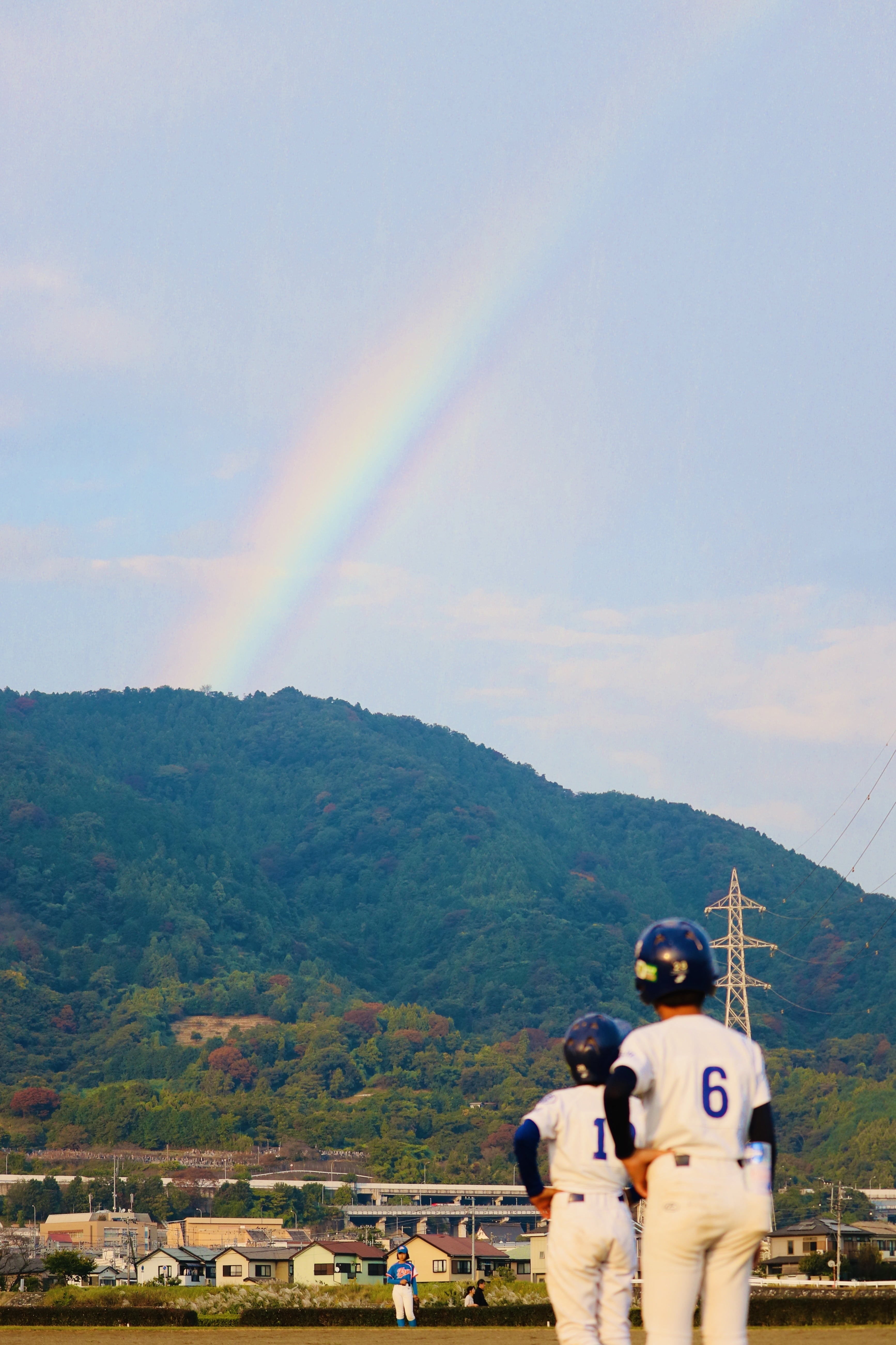 途中、大きな虹が応援に現れました。
