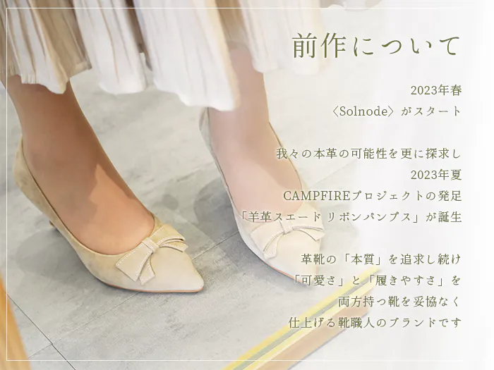 今夏に、私たち〈Solnode〉はCAMPFIREを始め、「日本人の女性の足のために、可愛さと高品質の両方を兼ね備えた革靴をお届けしたい」という目標を達成するため、一歩踏み出しました。