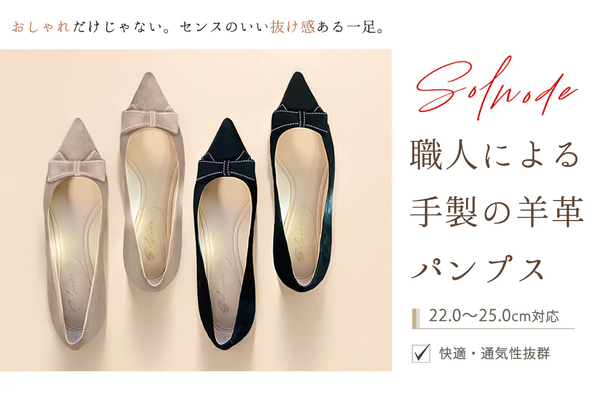 私たちは靴を通じて、女性たちが自信をもって自分らしさを表現できるよう、サポートしていきます。Solnodeは、女性たちの毎日をより豊かにするべく、手作りを極め、靴づくりに真摯に取り組んでまいります。