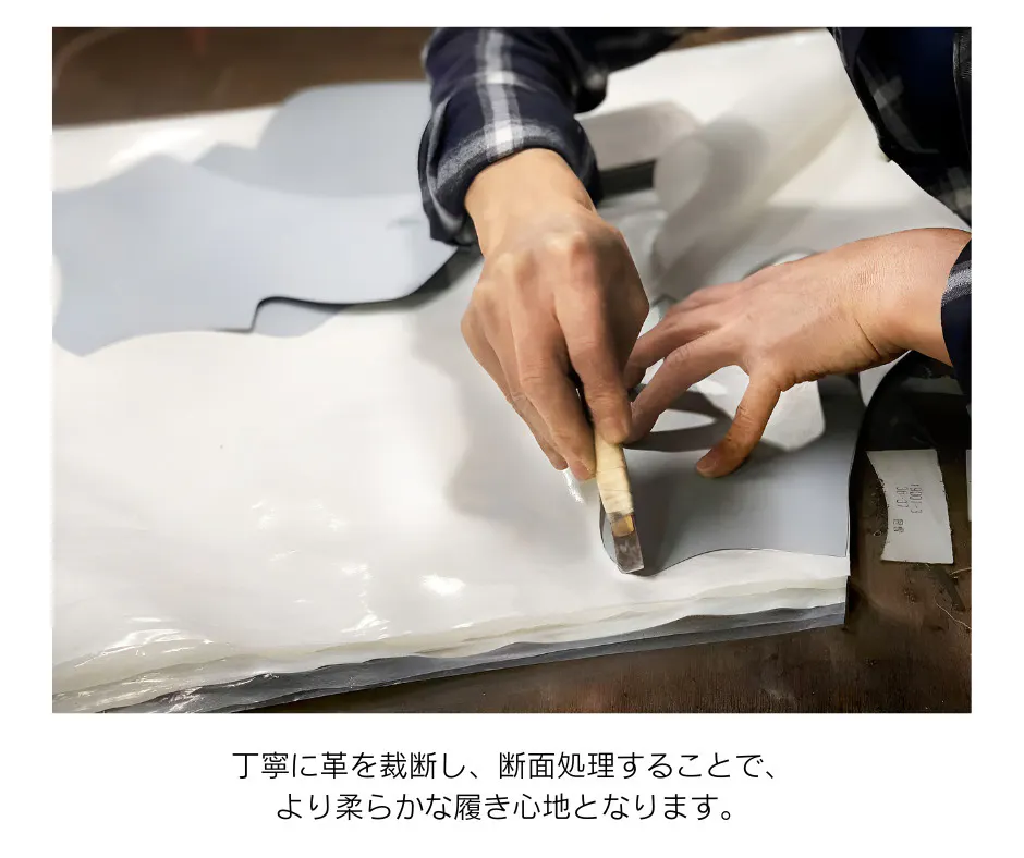 お手に取っていただき、その違いをご自身の手で実感してください。是非、ハンドメイドでしか実現できないデザインと履き心地をご堪能ください。