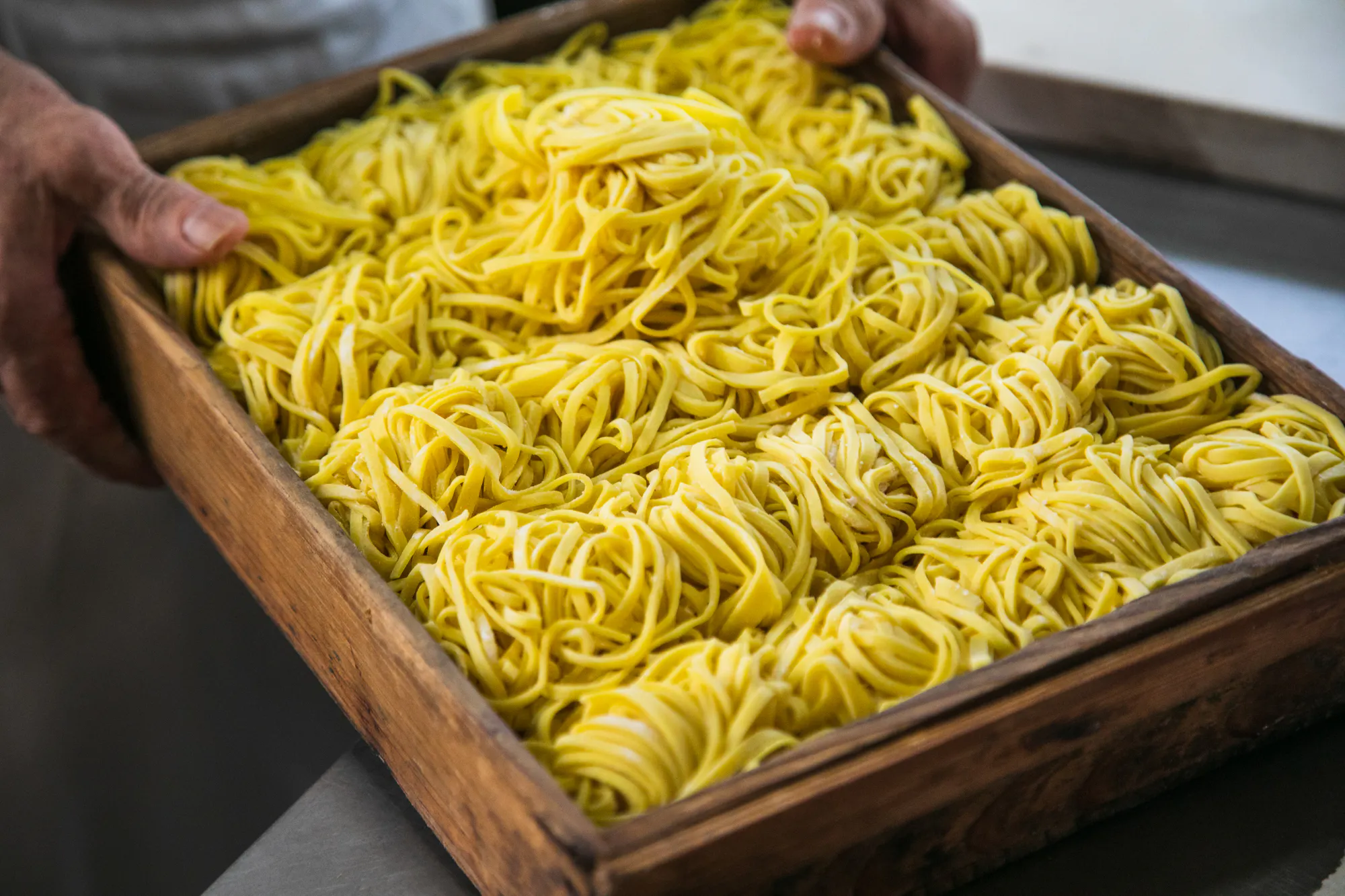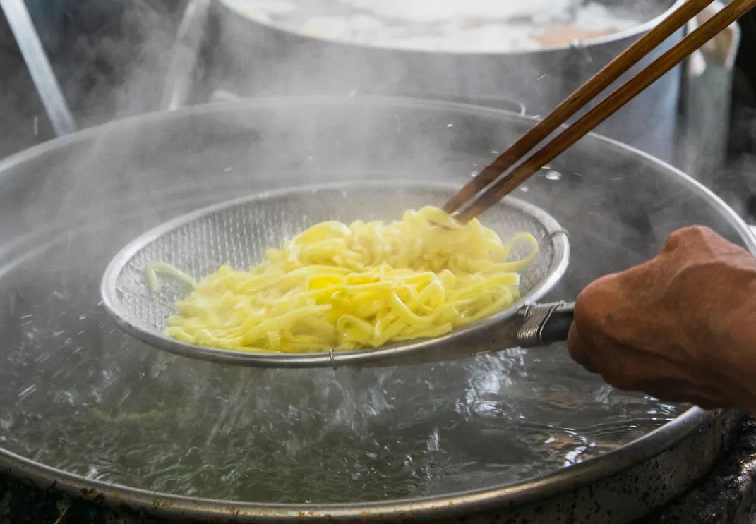 中華麺は生地のまま仕入れ、店主自ら4mm程度に毎朝裁断しています。この太い平麺が「唯一無二だ!」と園食堂の麺類をこよなく愛してくれる常連さんがたくさんいらっしゃいます。