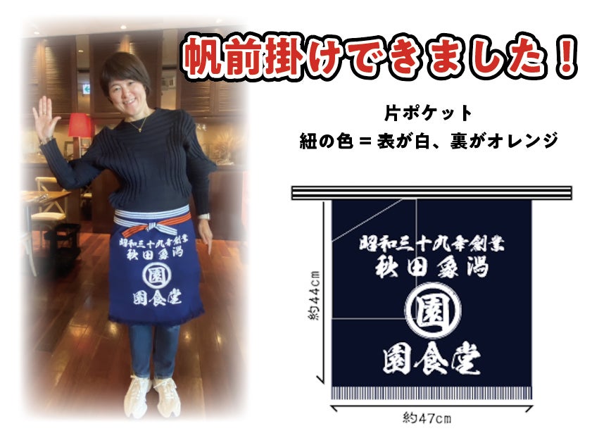 とっても素敵なので、帆前掛けのリターン品を追加しようと検討しております。