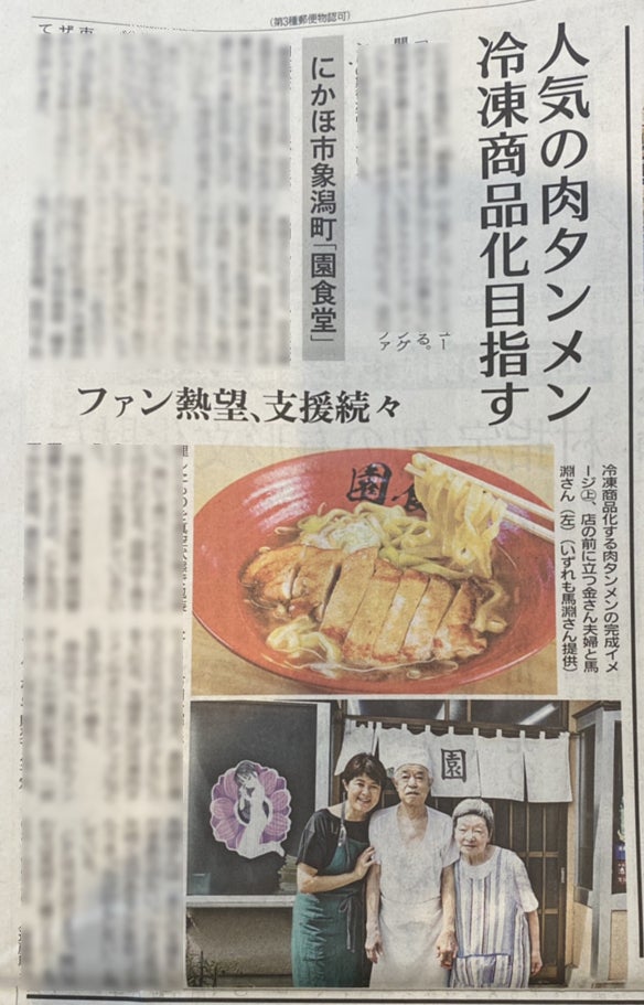 12月14日付の秋田魁新報に掲載いただきました!丁寧な記事で掲載いただき心より感謝申し上げます。肉タンメンのこと、クラファンのこと、両親への思いなどが書かれております。おかげさまで150万円と目標の50%まできました。残り12日、引き続きご支援、拡散など応援よろしくお願いいたします。