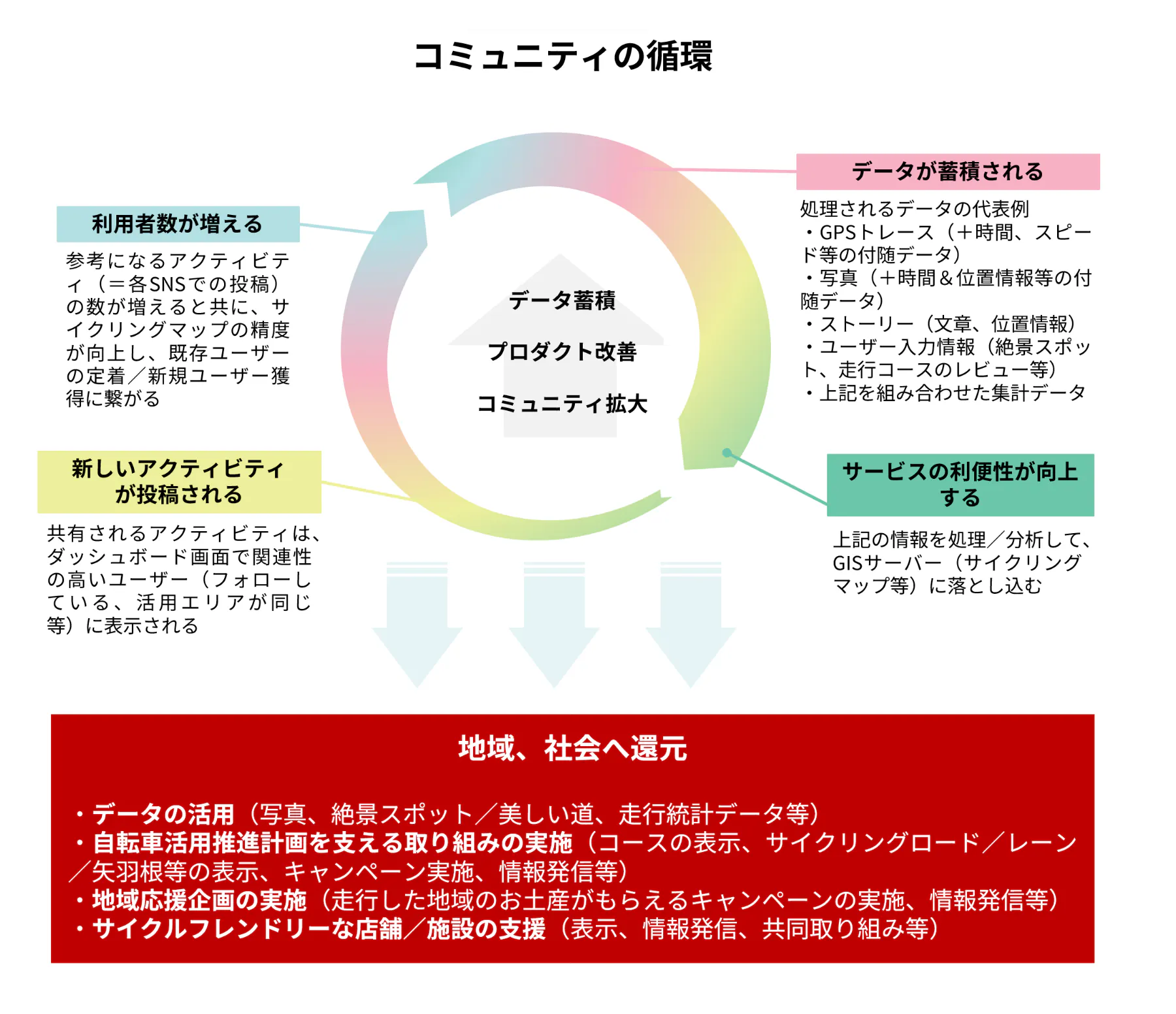 このサイクリングマップが全国各地の自転車活用を支える新しいインフラになり、隠れた魅力にスポットを当てることで、最終的には日本の地方の過疎化対策の一翼を担うことが我々の目指している将来像です。