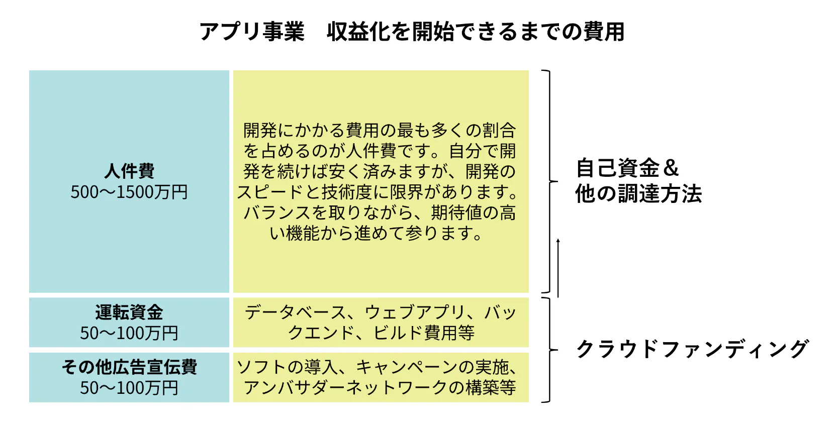 アプリの開発そのものはもちろんですが、市場調査、仲間集め、行政や企業との繋がり、クラウドファンディングでカバーできない分の資金調達、データの管理や広報活動など、やらなければいけないことはまだまだたくさんあります。