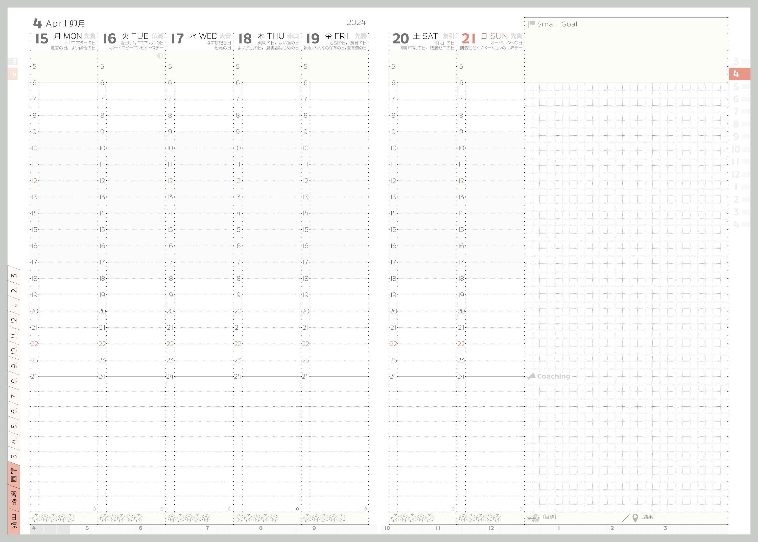 ・月間ページ群と週間ページ群との間が遠く離れてしまい、