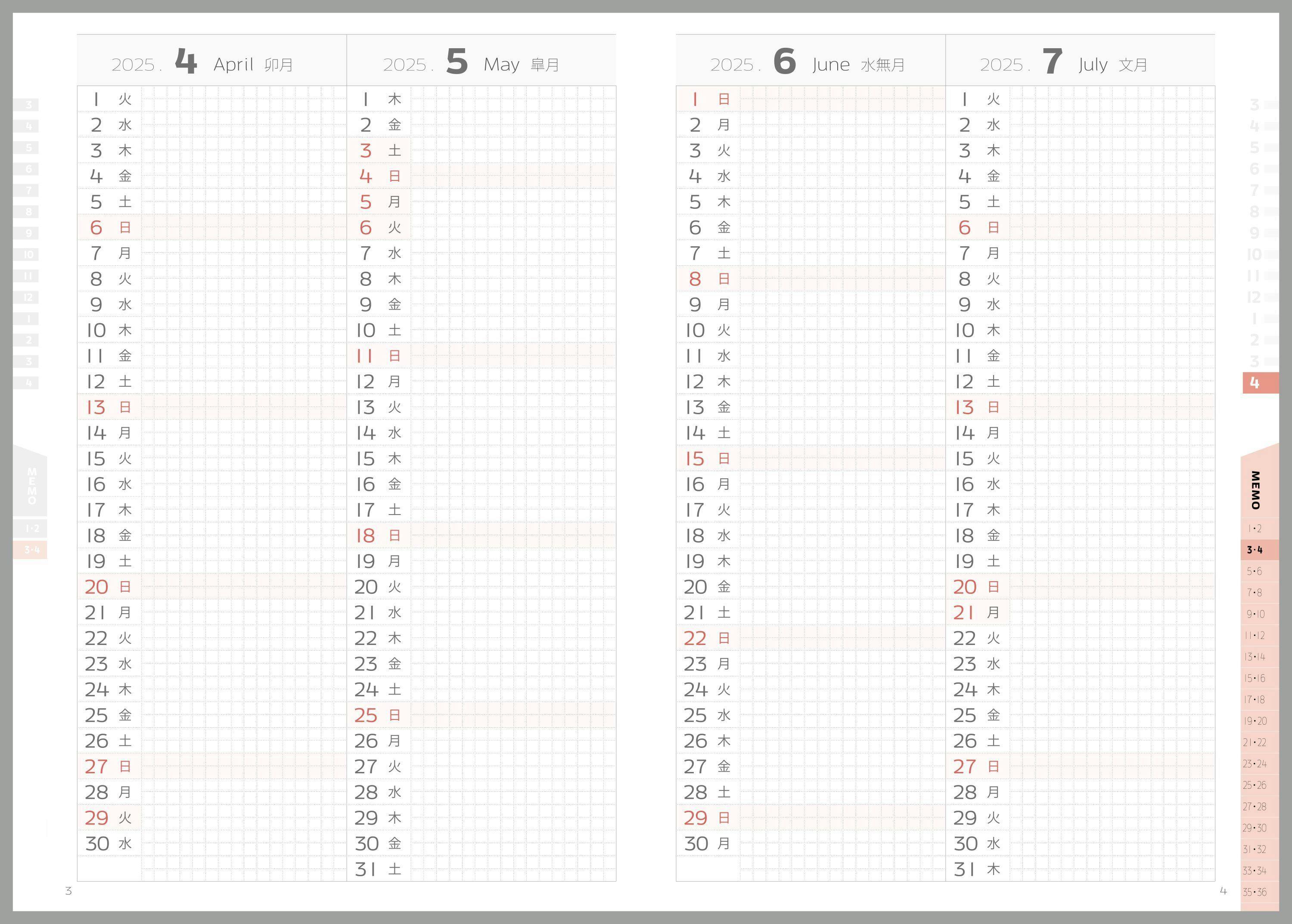 「巻頭ページ群・週間ページ群・巻末メモ群」の
