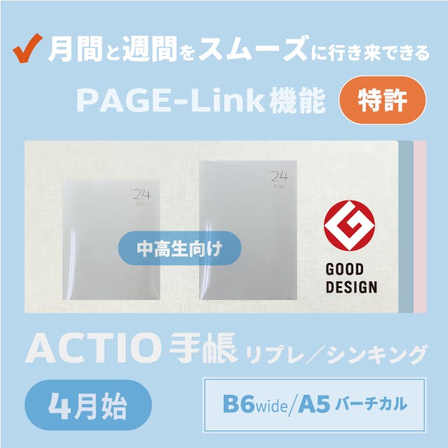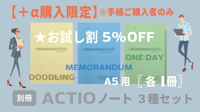 ※ACTIO手帳と別冊ノートのセット活用で、効果的な手帳活用にしていただけます。