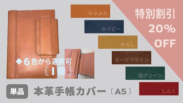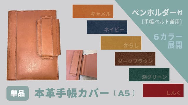 A:「手帳本体」と「本革手帳カバー」とは別途ご購入いただく必要がございます。また、本革手帳カバーのみのご購入も可能です。
