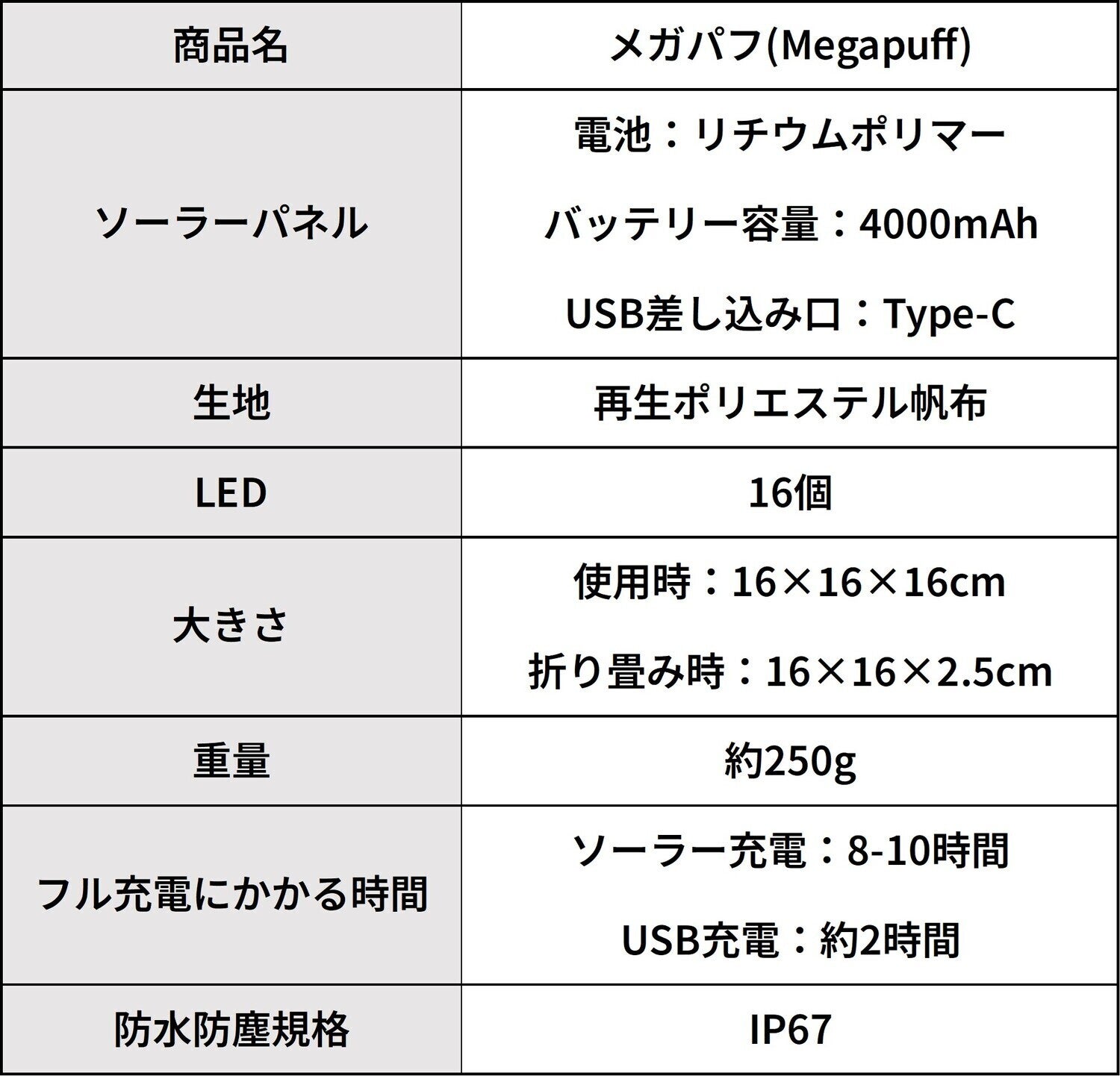 『メガパフ』が皆様の災害への備えやアウトドアのお供になれば幸せでございます。