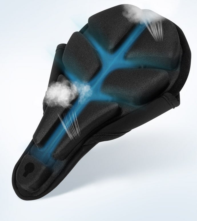 JFTエアクッションサドルカバーは適度な隙間のある深溝設計を採用しておりますので、お尻の接触面積を減らし、空気循環性を高め、通気性を促進し、放熱を加速させます。走行時の発汗やムレを軽減するとともに、走行中の前立腺への圧迫を軽減し、保護作用を発揮します。