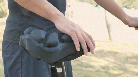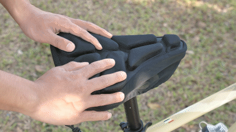 指による押圧により適切な空気をエアクッションサドルカバーに出し入れすることができるので、個々のニーズに合わせて最適かつ満足のいく状態に調整でき、間違いなく満足していただけるでしょう。