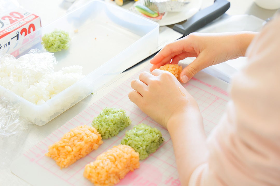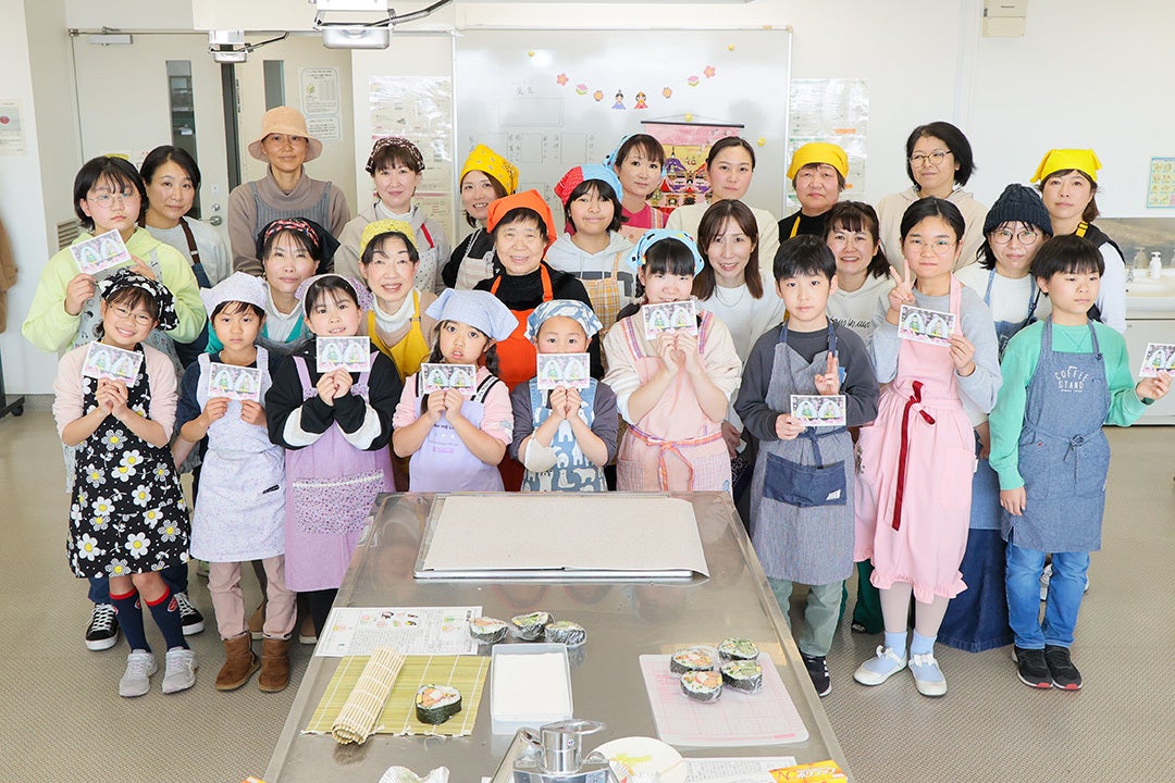 午前・午後あわせて30組の生徒さんと一緒に、ひな祭りの絵巻き寿司をレッスンしました。