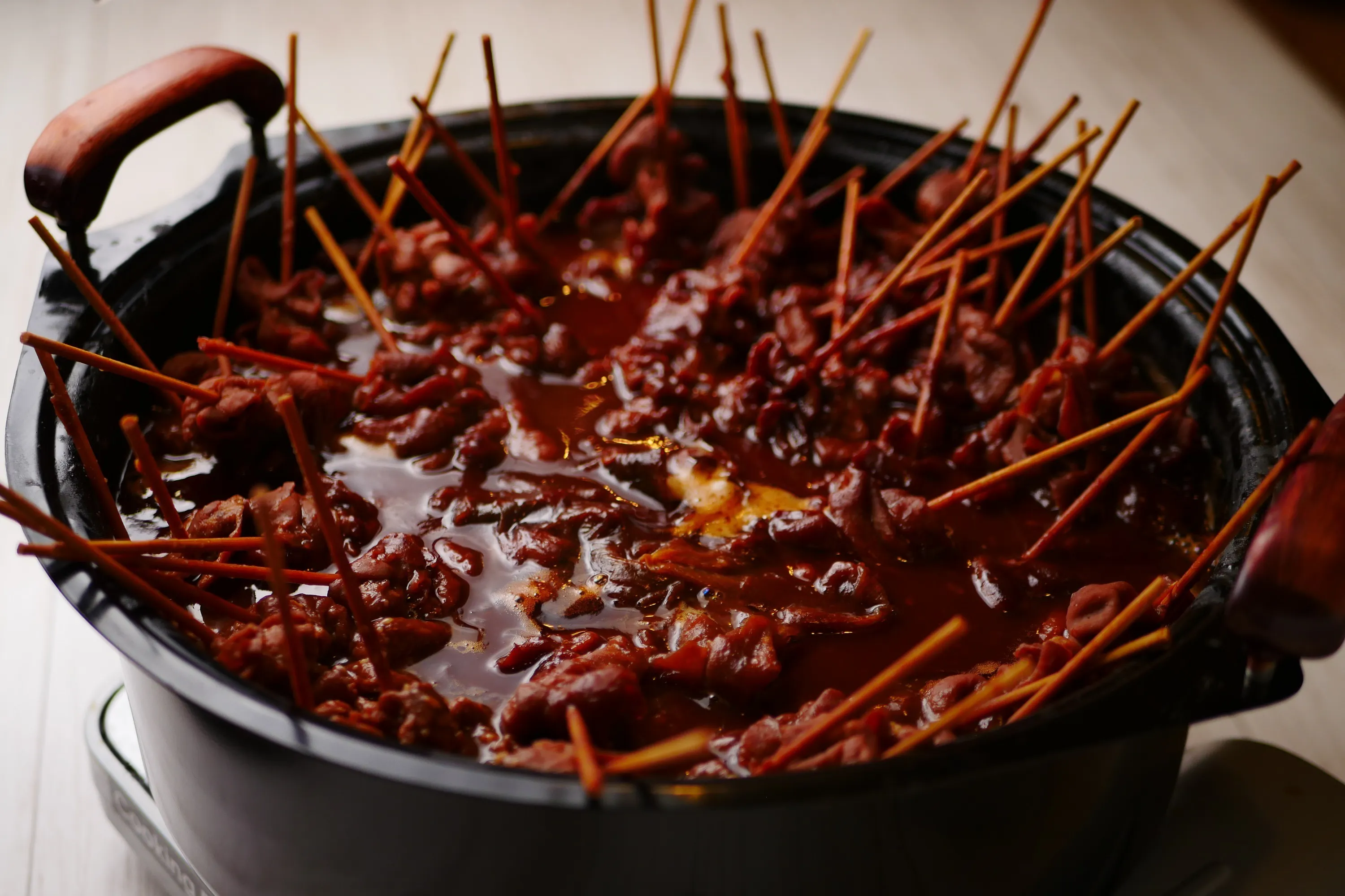 けいちゃん焼きが出来あがるまでは赤字覚悟の1本33円の(ホルモン串)をセルフサービスでご用意しております