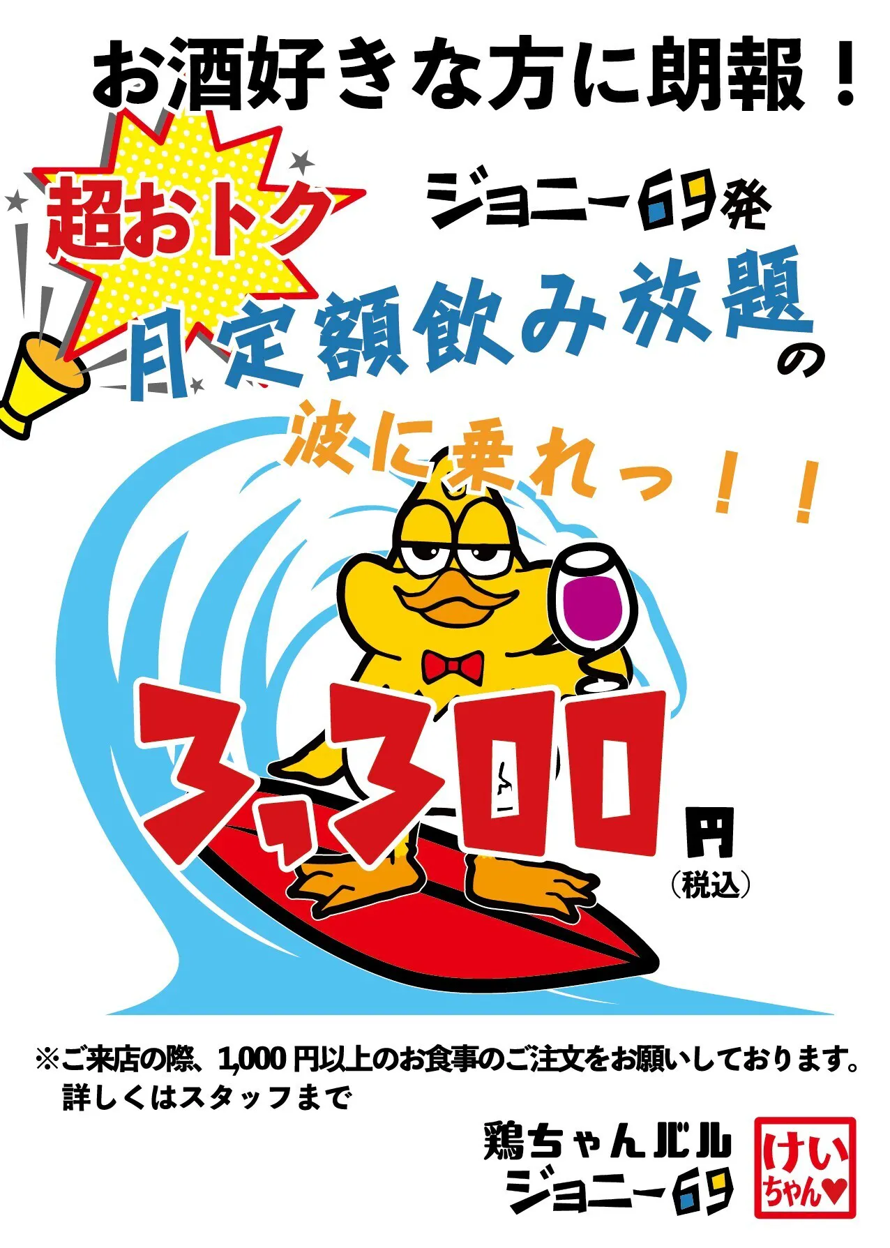 毎日でも気軽にご来店頂きたい思いから1カ月3300円(税込み3630円)の飲み放題会員をご用意しています。 ご来店すればするほどお得に飲めちゃいます。