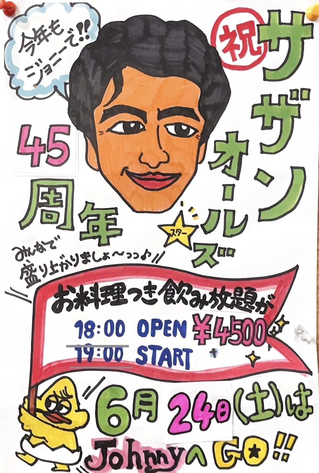 3月17日(日)に開催予定のジョニーフェスのプレミア券 リクエスト曲を演奏披露させていただきます。 当日スタッフから手作りの寄せ書きもご用意します。 入場料に料理もついております!