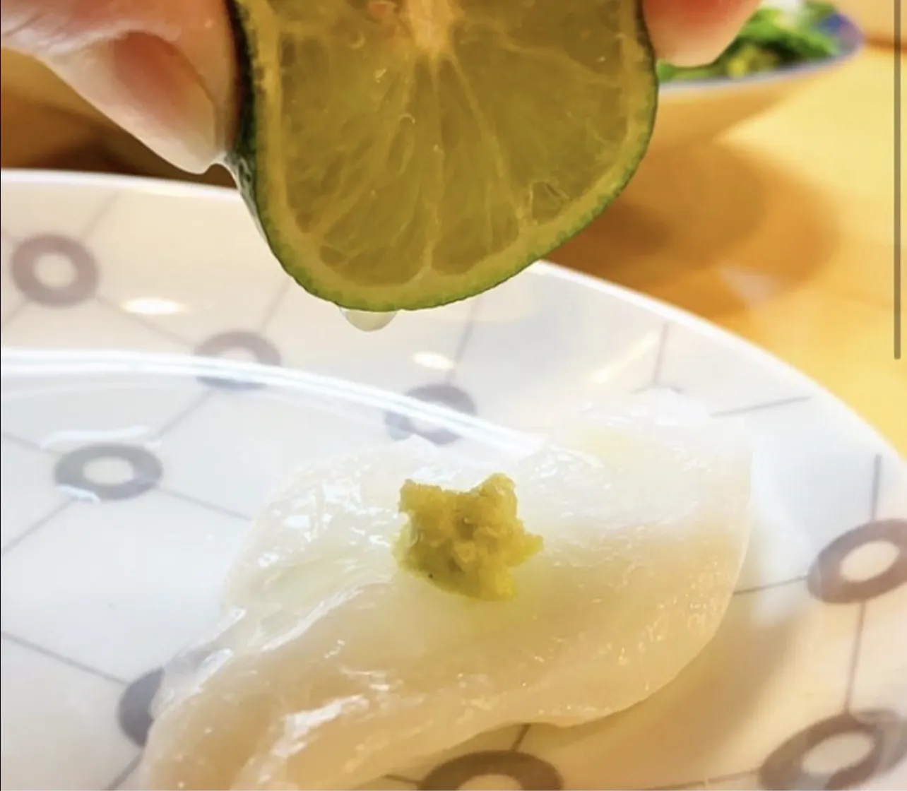 お寿司にすだちをかけています!