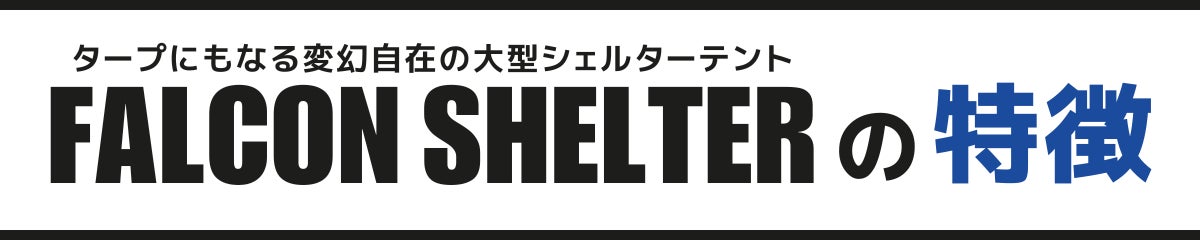 新商品の大型シェルターテント「 FALCON SHELTER 」は、変幻自在なバリエーションで使えるような設計を採用しています。