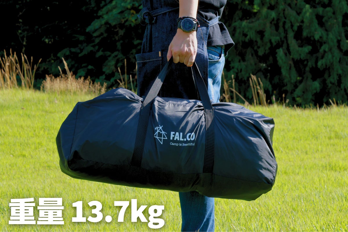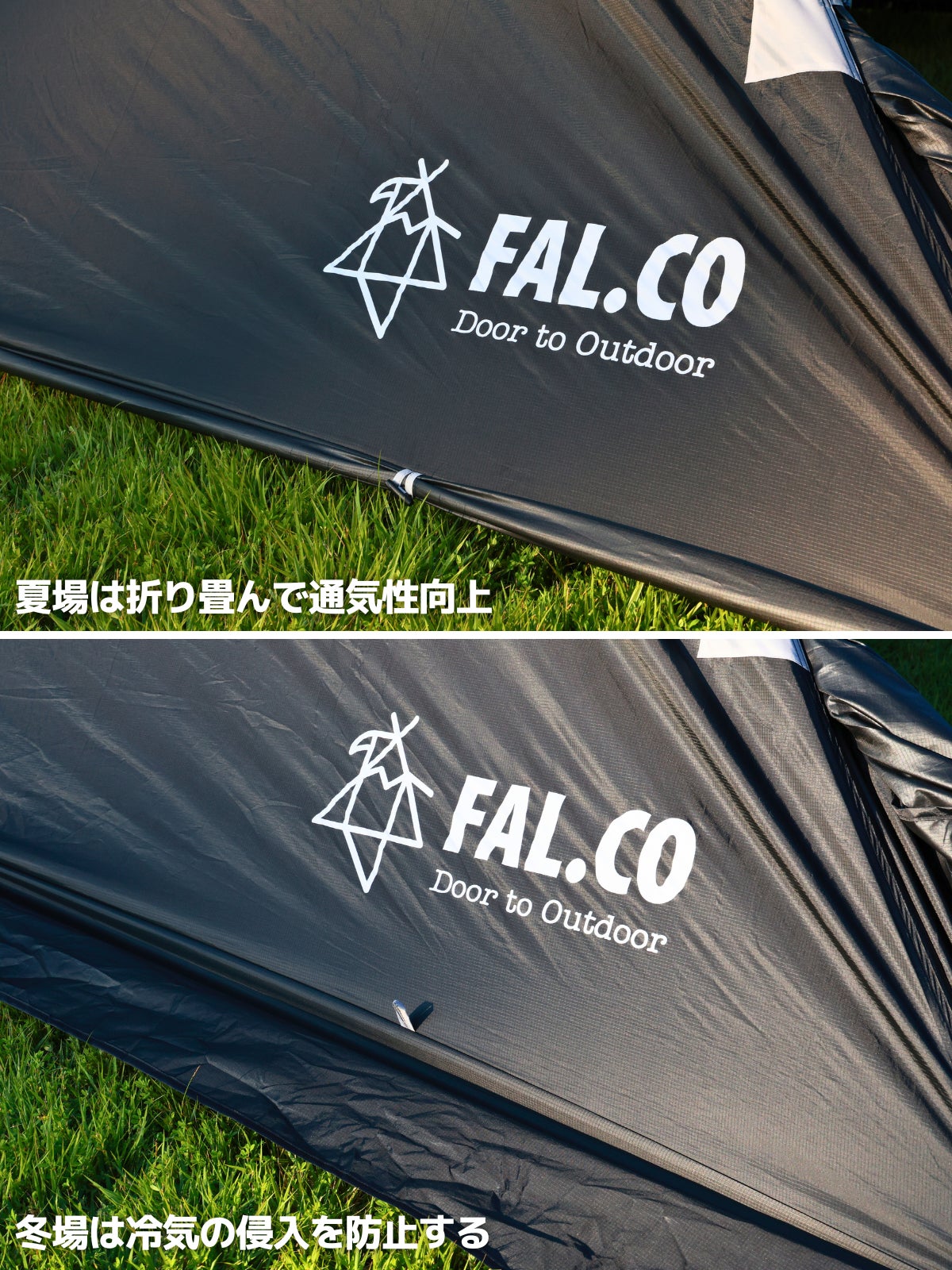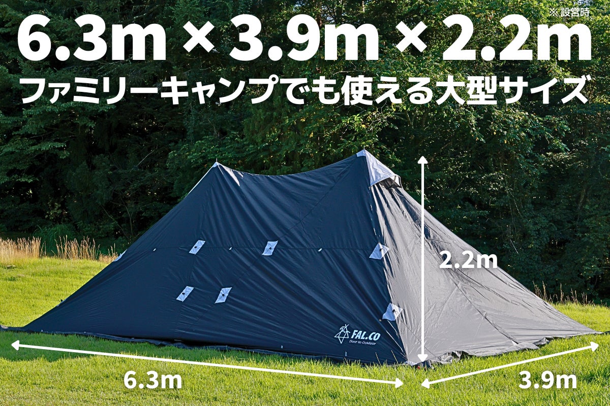 アウトドアブランド FAL.CO(ファルコ) のこだわりを詰め込んだ変幻自在の大型シェルターテントです。