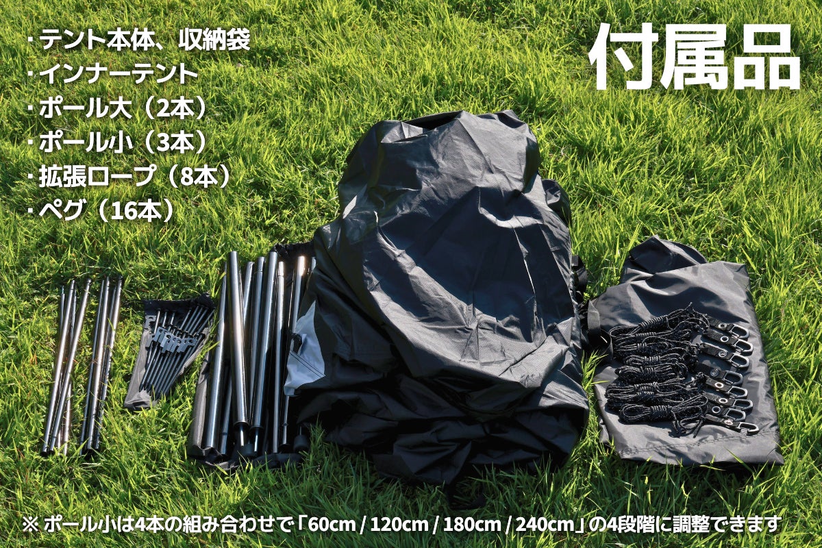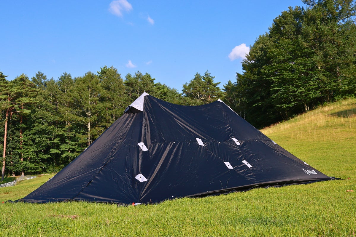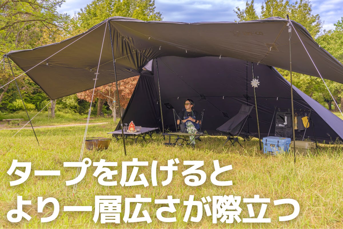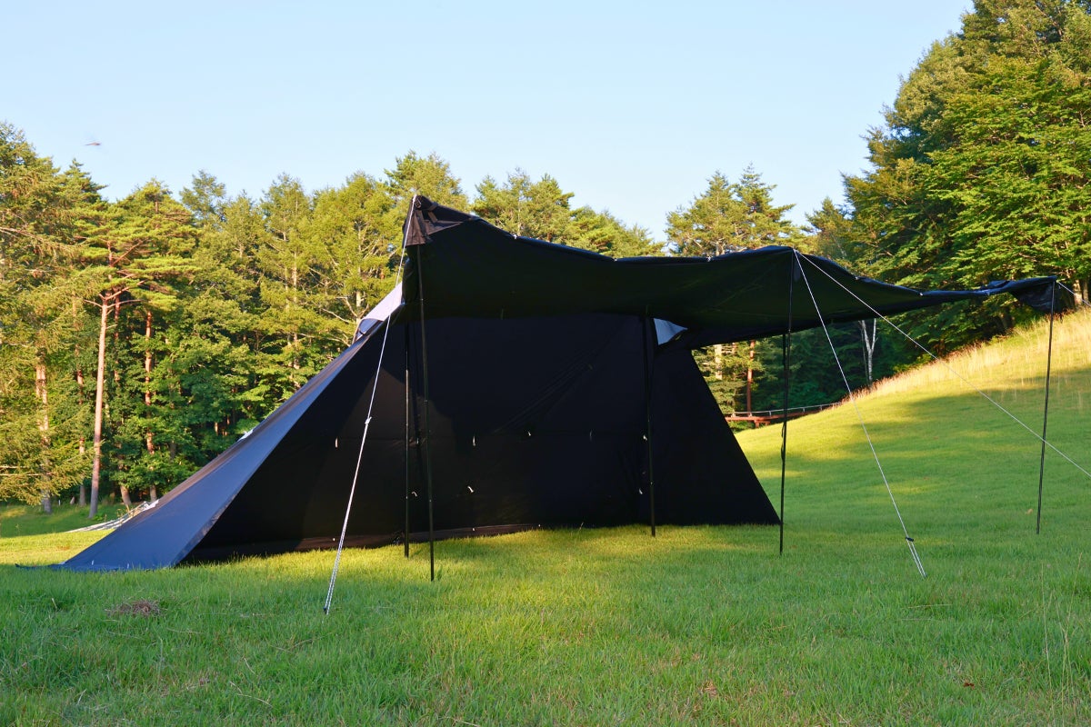 ブランド立ち上げから2年。様々なテントを試用してきた私たちが、一目置かれるブラックキャンパー&グループキャンパー向け製品を目指して試作を繰り返して、満足度の高い「タープにもなる大型シェルターテント」が完成しました!