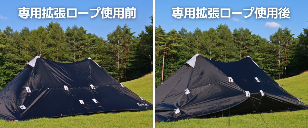 本商品には、テントを固定する「カラビナ付きの専用拡張ロープ」が8本付属しています。