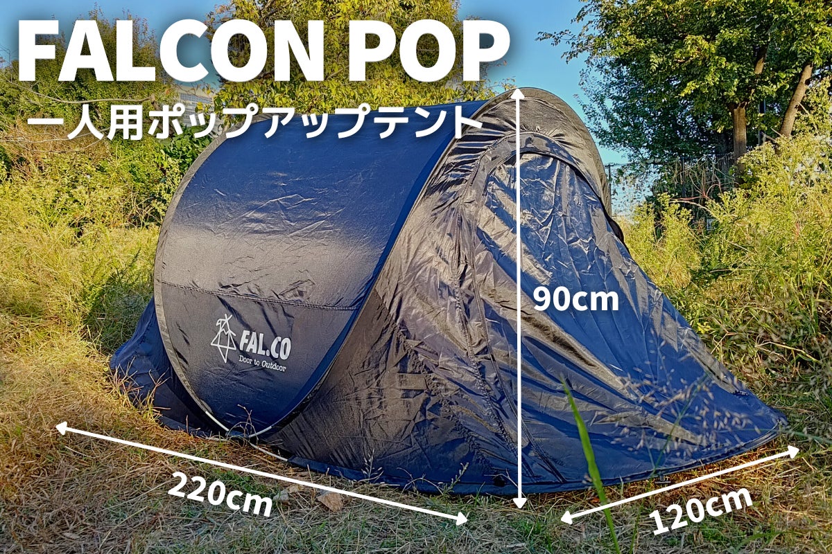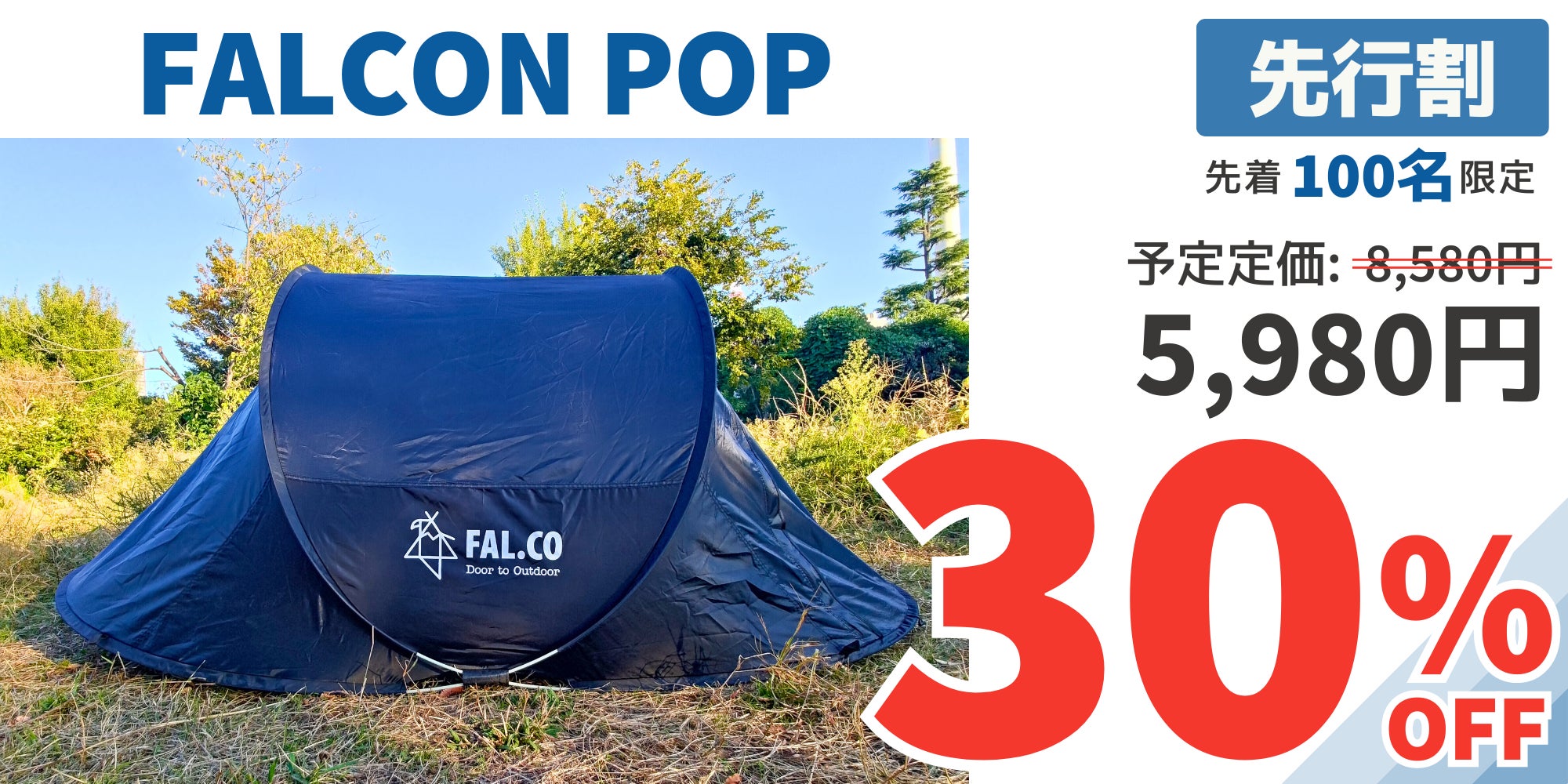 今回は大型シェルターテントだけでなく、一人用のポップアップテント「 FALCON POP 」も先行販売します!