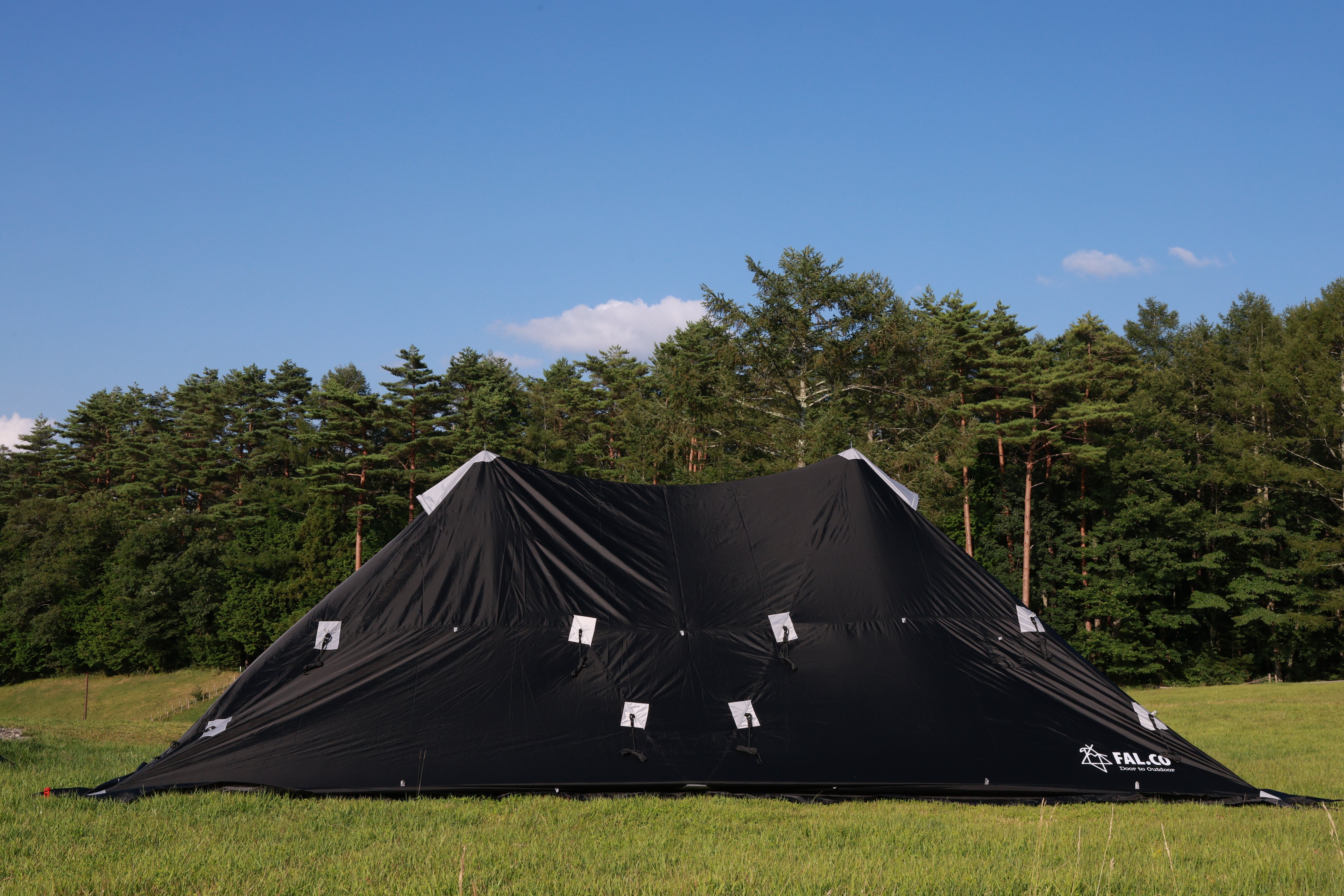 今回の新商品「 FALCON SHELTER 」は、最大10名で使用しても余裕のある【 6.3m × 3.9m × 2.2m 】という大型サイズのテントになります。