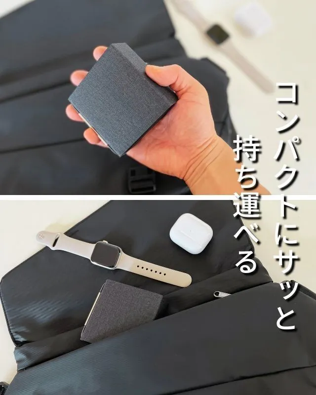 折りたたんだら充電器とは思えない外観、PUレザーで高級感を演出し、どこにでもお洒落に持ち運べます。
